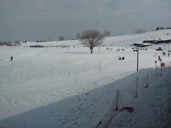 滑るのには物足りないだろう程度の丘だけどソリも含め結構な人の数だ。