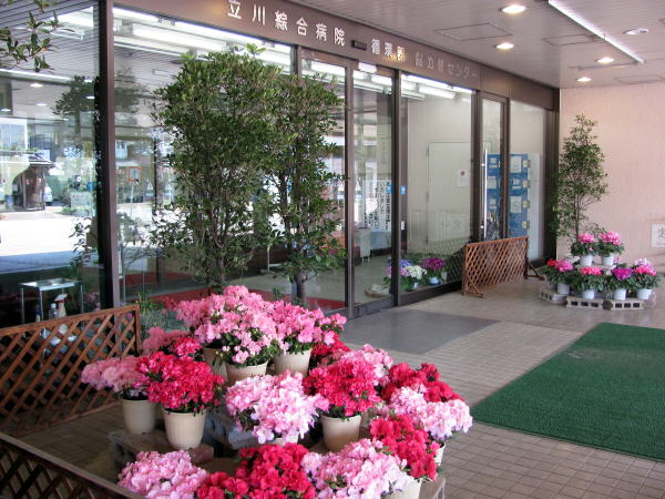 ///病院の玄関にはシクラメンなどがたくさん///