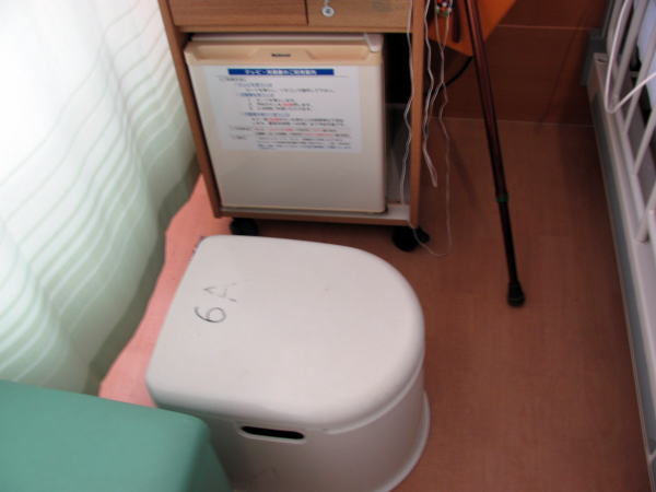 今日、自宅に戻る前もベット脇に置いてもらってたポータブルトイレにしきりに座る。