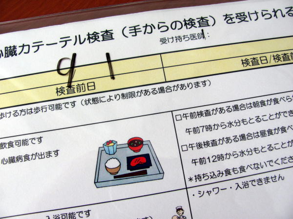 心臓カテーテル検査の手順は、手首からカテーテルを挿入し造影剤で状態を見るようだが必ずしも簡単な(安心な)検査ではないようでちょっと不安。