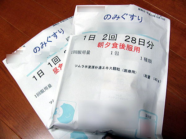 落ち着いてるけど環境は変わらず、従って薬も変わらず今まで通りの漢方を処方してもらう。