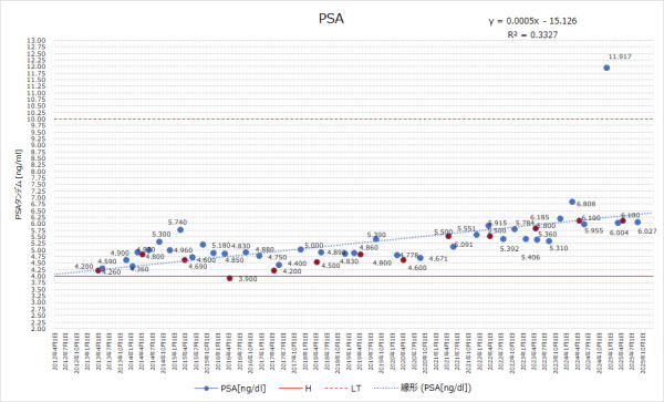 12年間で4.260から6.027ーー>0.147μg/ml/year これが良いのか悪いのかはわからんが・・・